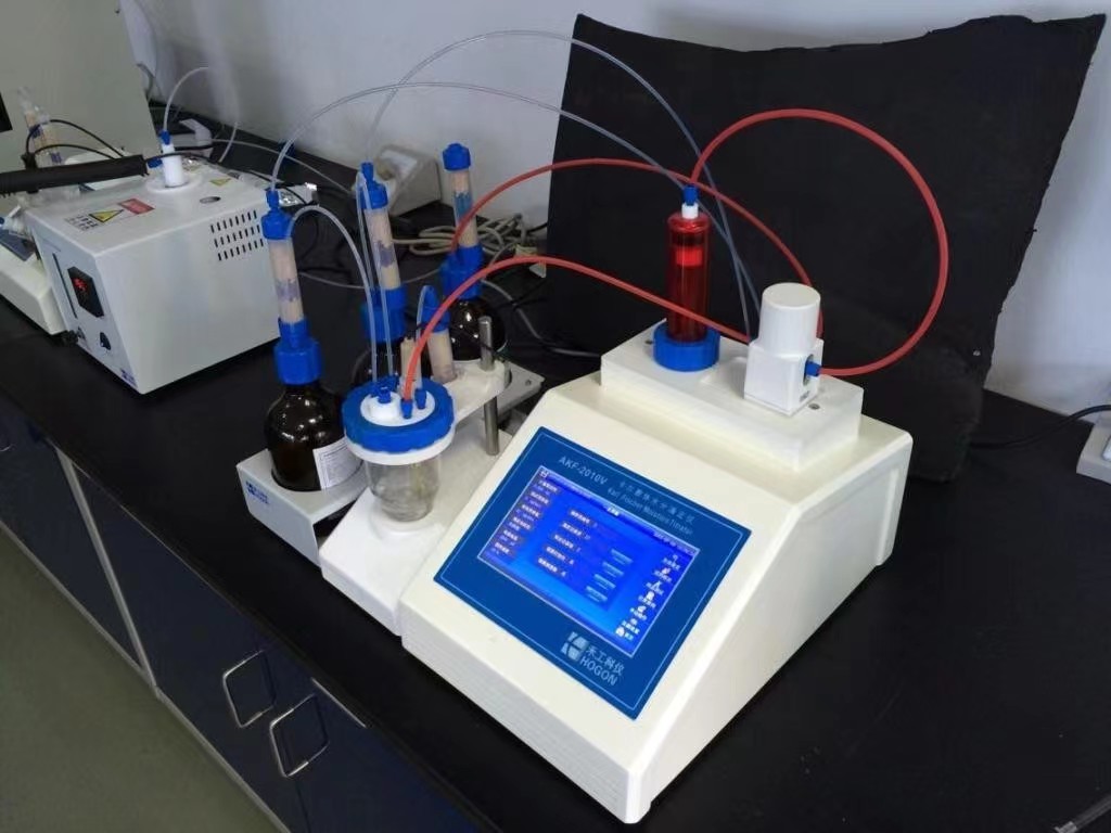 將樣品注入電解液時(shí),應(yīng)注意卡爾費(fèi)休水分測定儀針頭需插入液位以內(nèi),防止與電除塵器壁或電級(jí)接觸,以防樣品虧損。而一般注射針頭由于針頭短粗,不能滿足上述要求。挑選注射針頭時(shí),盡量選針頭長度在15厘米左右的注射針頭。這種注射針頭可以有效防止上述問題。為了獲得準(zhǔn)確的測量值,注入量應(yīng)與其說含水量一致。但是,假如采樣速度比較慢,樣品會(huì)揮發(fā)或吸收空氣的水分,進(jìn)而影響測量值。為在短期內(nèi)稱量樣品質(zhì)量并進(jìn)樣,可以從卡爾費(fèi)休水分測定儀akf系列旁設(shè)置最少分度電子天平。抽樣后可馬上稱量進(jìn)樣針的質(zhì)量,進(jìn)樣,從而降低出錯(cuò)的可能性。